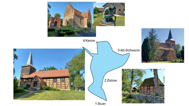 Kirchen südwestlich von Plau am See (Gnevsdorf, Vietlübbe, Karbow, Retzow)
